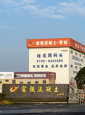 岳陽市臨港富強混凝土管樁有限公司位于湖南城陵磯臨港產業新區(新材料區),處于長江路、省道201線和松陽湖路交匯處,水陸交通非常方便。公司于2011年5月正式注冊成立,注冊資金2000萬元人民幣,總投資為5000萬元人民幣。現擁有砂石專用碼頭2個、砂石運輸船只4艘。同時,在做商品混凝土的基礎上,整合資源,延伸產業鏈,做大做強管樁產業。  從富強